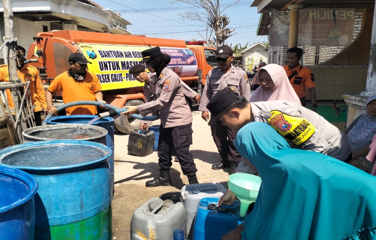 Kegiatan distribusi bantuan air bersih ini juga dimanfaatkan langsung oleh aparat kepolisian dari jajaran Polres Pamekasan dan Polsek Galis menyampaikan sosialisasi tentang Pilkada 2024.