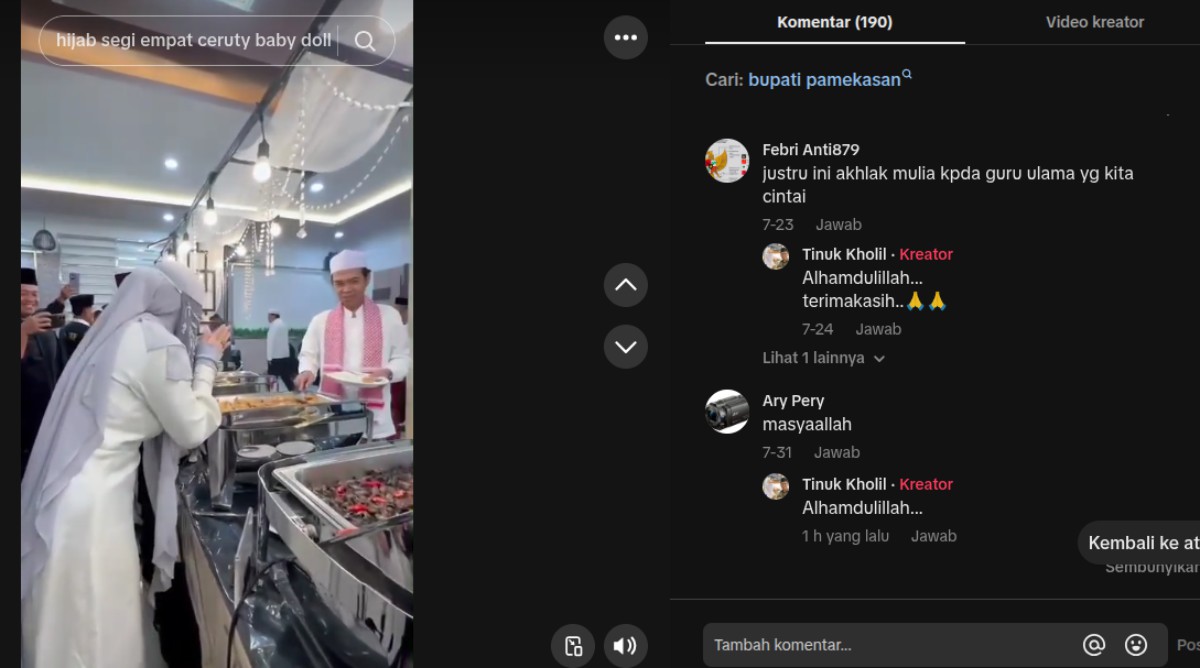 “Salam untuk Pak Bupati ibu, Kiai Haji Doktor Kholilurrahman,” ucap UAS seperti yang diunggah di akun tiktok @tinuk_kholil.