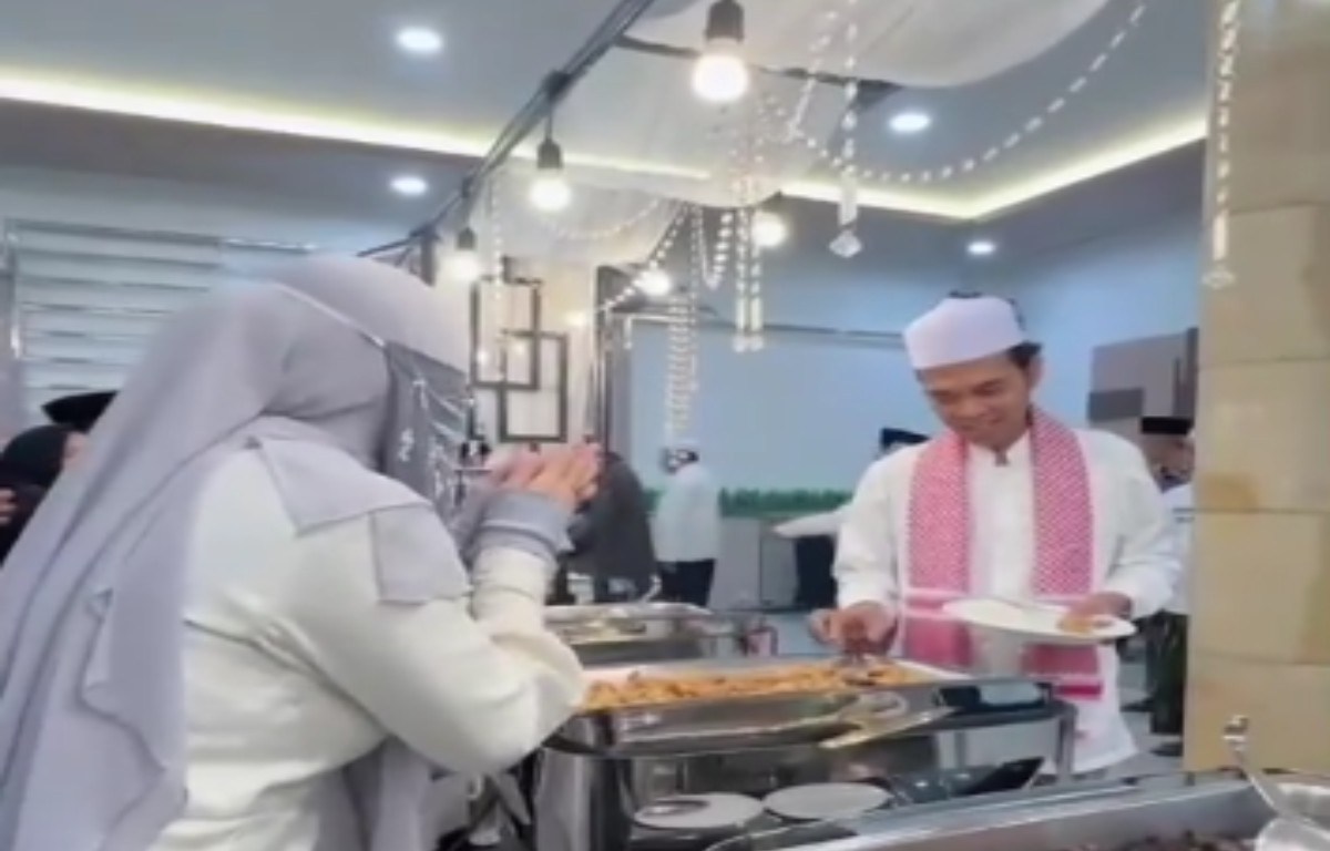 Saat menyampaikan salah melalui Istri Bupati Pamekasan itu, UAS nampak sedang mengambil makanan yang tersaji di ruang itu. [Baca Juga: Istri Bupati Pamekasan Ingatkan Pentingnya Pendidikan]