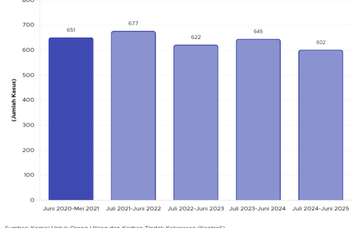 Dalam rentang Juli 2023-Juni 2024, jumlah kasus kekerasan kembali meningkat jadi 645 kejadian. Terakhir, Juli 2024-Juni 2025 jumlah kekerasan yang dilakukan polisi berada di angka 602 peristiwa.